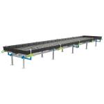 If you need more than one Botanicare® Slide Bench System, the bulk option sends components loaded individually on a pallet without repackaging parts into a mixed case. Same great product, less handling and waste. The Botanicare® Slide Bench is a versatile, modular system that provides complete grow space control. This system allows growers to modify length, optional working height, variable aisle width and drainage slope to adapt to any growing style, greenhouse or room size. Extend the length of a 10 ft 6 in base system in 5 ft increments up to 100 ft 6 in. 8.5 in of travel from center provides a minimum aisle width of 17 in. Built-in slope/height adjustment of up to 5 in for drainage. Made of sturdy powder-coated steel frame with heavy gauge ABS trays that resist bowing, cracking and leaking. Trays have a 4.5 in sidewall height and include drain screen with 3 punch outs for plumbing lines. Can handle 25 lb per sq ft load rating. Reinforced roller connectors provide smooth travel and won't deform under pressure. Secured anti-tip bar with bump stops to prevent tipping when loaded. Choose from 3 heights of 12, 20 and 30 in.