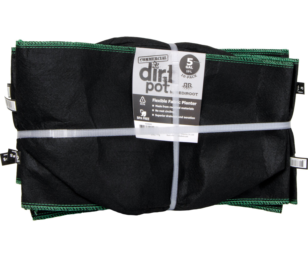 Designed to maximize airflow to the root zone, Commercial Dirt Pots by RediRoot feature a lightweight yet durable fabric that provides effective and efficient air root pruning for plants and trees. These bags are known to produce a dense fibrous root structure, reduce circling roots, and increase yields.