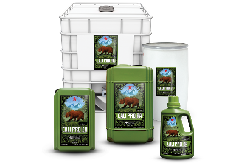 Spend less time measuring and tweaking the feeding program and more time harnessing the full genetic potential of plants with Cali Pro Grow A & B and Cali Pro Bloom A & B—Emerald Harvest’s easy-to-use 2-part base nutrient series. Cali Pro is a nitrogen-rich fertilizer that nourishes high-yield, indoor-grown crops with the essential elements they need to develop strong stalks and stems and support a robust harvest. Rich in nitrogen, phosphorus, potassium and other essential nutrients like calcium, magnesium and sulfur that plants need for vigorous fruiting and flowering, Cali Pro also contains trace elements such as chelated iron, cobalt, manganese and zinc .
