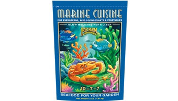 Marine Cuisine is an all-purpose fertilizer that blends ocean-based ingredients like crab meal, shrimp meal, seabird guano, and kelp with mineral plant foods to give your garden a quick boost and provide long-lasting, slow release nutrition.