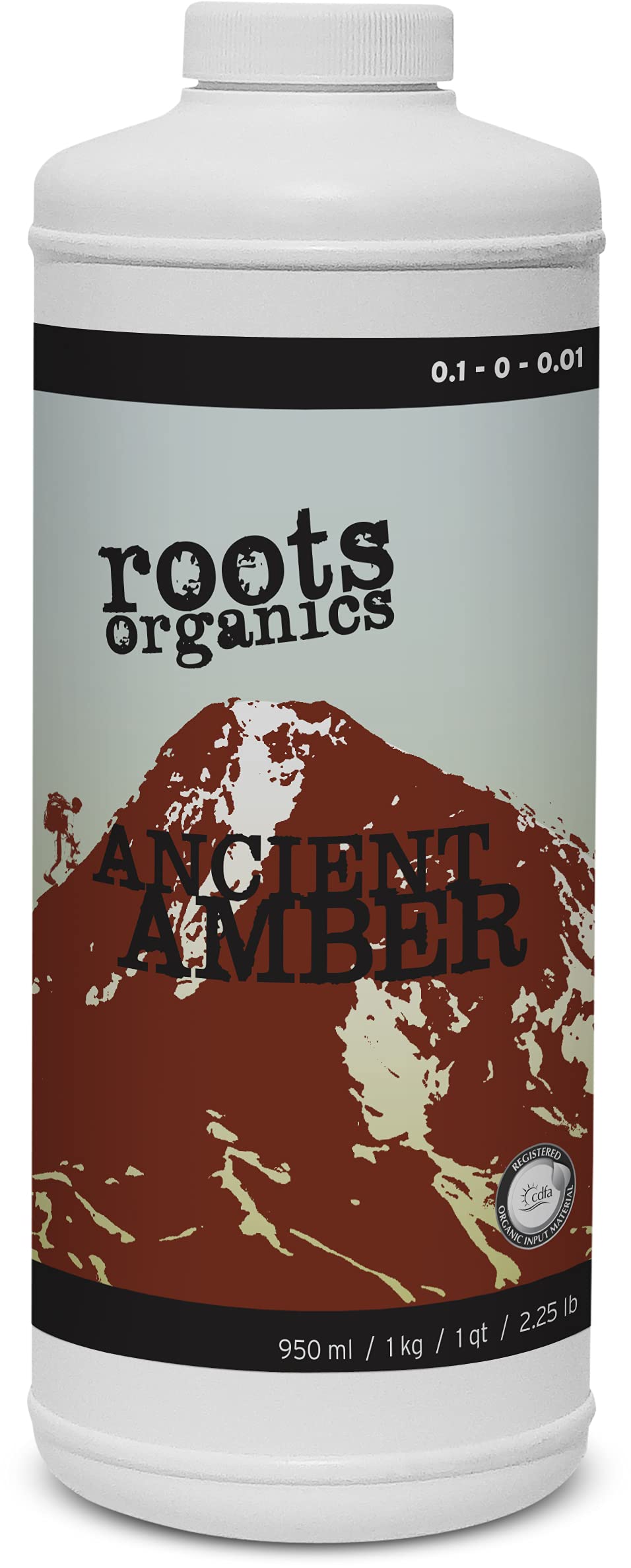 Roots Organics Ancient Amber is a highly-soluble foliar spray and distinctly active natural nitrogen source extracted from nettle, a nutrient-rich perennial plant used by humans since ancient times, and from non-GMO soybeans. A highly-soluble foliar spray that provides rapidly available nitrogen. Perfect for the transition period between veg and flower. Great to water in, but shines as a foliar feed.